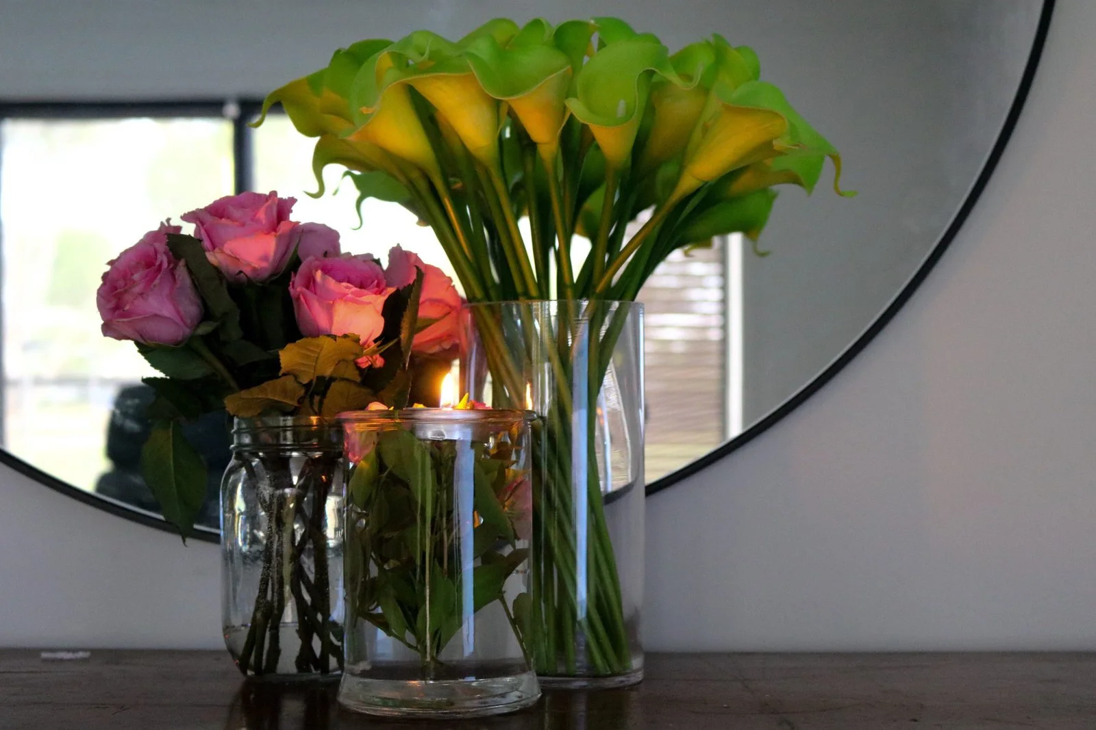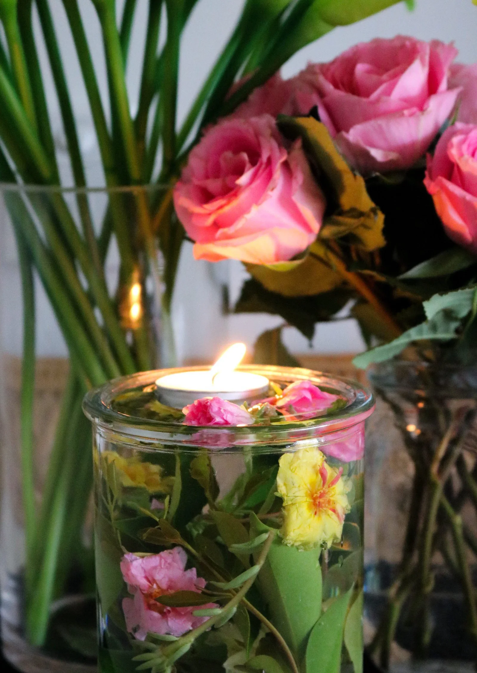 Take a couple of glasses, add leaves, currants, shrubbery, petals, whatever’s nearby, plus water and a candle. Presto. The ultimate centrepiece slash husband attractor.